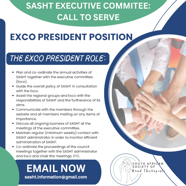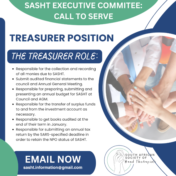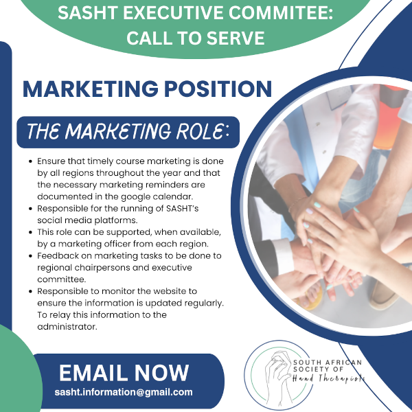 SASHT Executive is calling for volunteers for the positions of president, treasurer, marketing and IFSHT delegate.